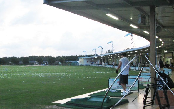 练习场内通道比较宽阔干净,呈弧形状。进入楼梯口即是练习场A区,平时五六点时段练球人流比较多,草地保养还不错;真草区保养得比较好,草地绿色养眼,着地感较柔软平塌,有种沐浴在大自然的感觉;练习场收费比较符合大众消费,免打位费、灯光费、冲凉费、无线网络费;此处有一点要建议大家的是,需自驾车到练习场,因为搭的士还需步行一段距离才能到达练习场!