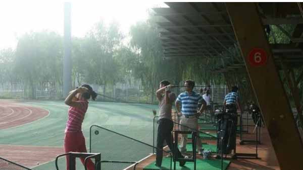 奥体中心高尔夫练习场场地开阔、绿树成荫、溪水环绕,一年四季鸟语花香。