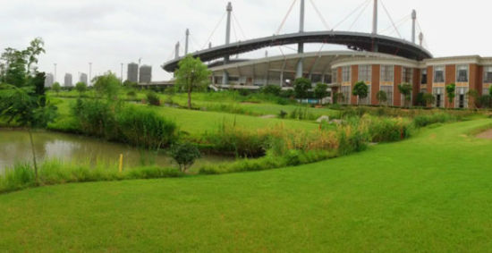 球场球道使用百慕达419草,果岭为本特A4草,球场风景如画,融于自然。最大的特点是球道窄、水障碍多、沙池大,多处障碍设计相辅相成、相映成辉,虎视眈眈地与发球台相呼应。开阔的湖面泛着微光,果岭地形的巧妙设计使其更具挑战性,是考验球手的绝妙一笔。