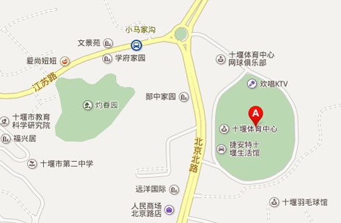 十堰市体育中心位于十堰市北京北路62号,一期规划占地面积150亩,目前建成投入使用的有田径场、足球场、室外灯光网球场、篮球场、羽毛球馆、乒乓球俱乐部、室外乒乓球健身长廊、室外健身苑、高尔夫俱乐部、跆拳道馆等专业健身场馆。