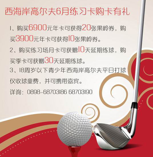 海南西海岸高尔夫6月练习卡购卡有礼