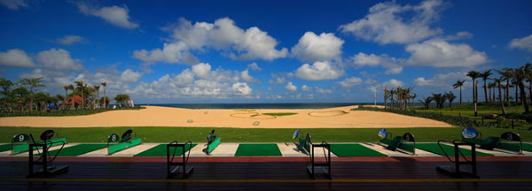 除了球场与海滩的邂逅外,这里的练习场也不例外,罕有的面海高尔夫练习场,给你不一样的练球的感觉,在享受中练习高尔夫,在怡然中品味高端的生活。随想,面对着的是金黄色的沙滩以及蔚蓝的天空与海洋,随兴挥洒,击出的是高尔夫,更是放飞自己的心。友情提示一下,这里是练习场,不是一般海滩,千万别脱下鞋子冲下去。