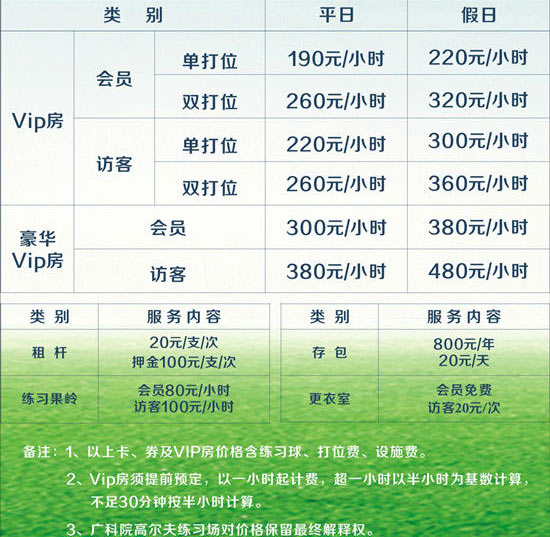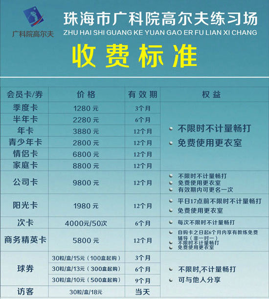 珠海广科院高尔夫练习场收费标准