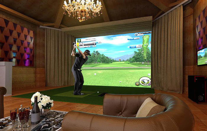 室内高尔夫建在非诚勿扰酒店休闲中心,采用先进的测量器,测量数据精准,可实现左右手打球,通过球速和杆速来测定最精密的飞行数据,能体现11种击球飞行动作。球场场景是根据实际航拍制作而成,真实再现球场景观,内含美国奥古斯塔球场、德国球场、日本球场等多国球场,球场软件可定期升级,比杆赛可以支持6人同时竞技。此外,模拟器采用真实3D球场画面,可显示出多角度的影像。