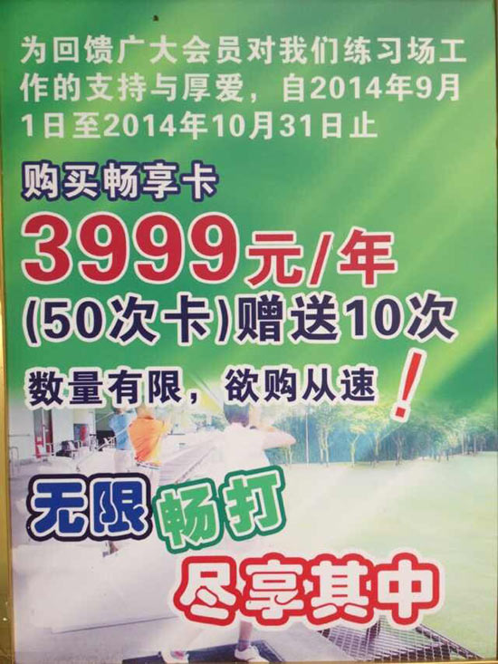 3999元/年 青岛国际高尔夫练习场畅享卡优惠