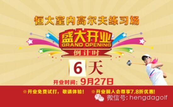 恒大室内高尔夫练习场9月27日盛大开业!开业倒计时“6”天!
