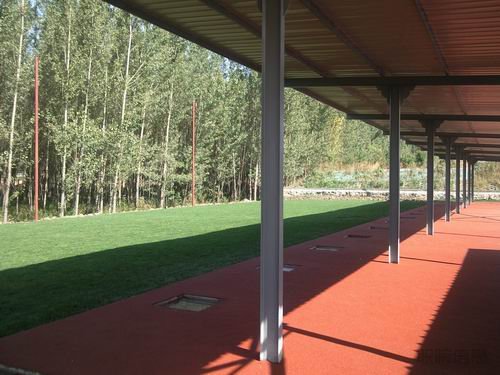 辽阳职业技术学院高尔夫练习场位于校园西南角,红色橡胶打台上建有教学打位16个、训练场草坪现已铺设完成、办公室一间、仓库两间。