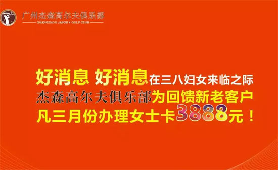 杰森高尔夫俱乐部为回馈新老客户,凡三月份办理女士卡仅需3888元即可享受原价5900元年卡!
