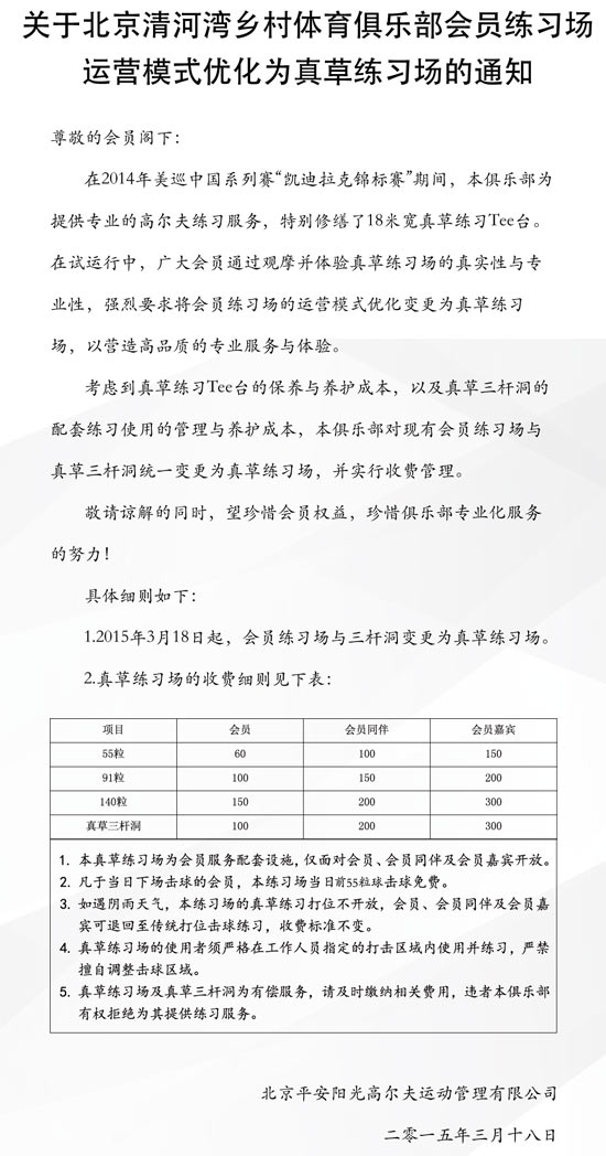 北京清河湾高尔夫会员练习场运营模式优化为真草练习场