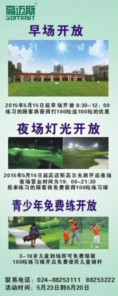 沈阳市浑南高迈斯高尔夫练习场特惠通知