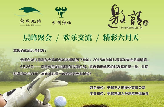 2015年6月26日,由无锡市太湖绿化有限公司冠名,东城九号高尔夫俱乐部主办的“东城九号”首届会员邀请赛将在南京句容龙山湖高尔夫俱乐部举行。