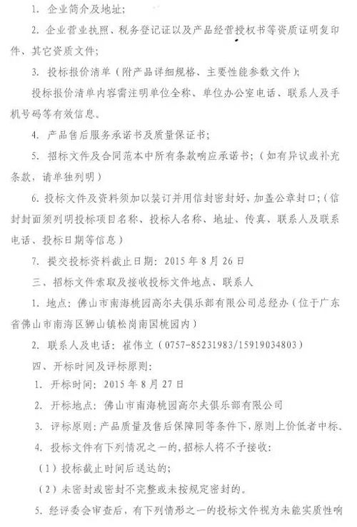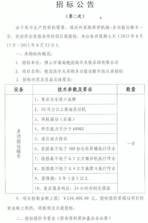 佛山南海桃园高尔夫多功能运输车采购招标(第二次)