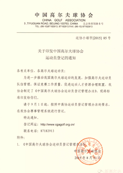《中国高尔夫球协会运动员登记管理办法》出台了,从9月1日开始,你们要根据以下通知的要求,去中高协赛事管理系统进行登记。