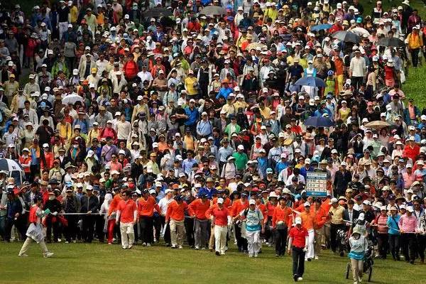 在韩国的高尔夫球场里,你可以看到这样的场景——哪怕是工作日,大部分的球场都保持100人以上的来客数。很多韩国人面临着周末订球场难的问题,许多球迷甚至会去周边的国家来个“高尔夫周末”。到了球场封闭的寒冷冬季,大部分的球迷都会选择到周边的国家去打球,例如在山东青岛,每年九月份,平均每月都有1000多名韩国客人来打高尔夫,十月更是达到1500多名,占据了当地球场5成的客源,韩国球迷对高尔夫的狂热可见一斑。