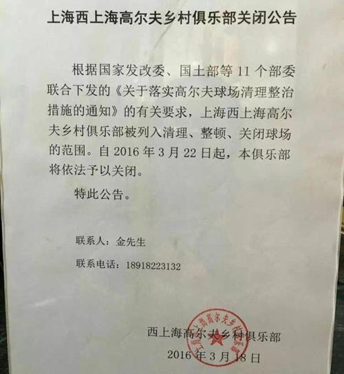 此前,3月19日,上海首家高尔夫俱乐部——上海国际高尔夫球乡村俱乐部与太阳岛高尔夫俱乐部在同一天被拆除。随后的20日,上海东方高尔夫球场也被夷为平地。
