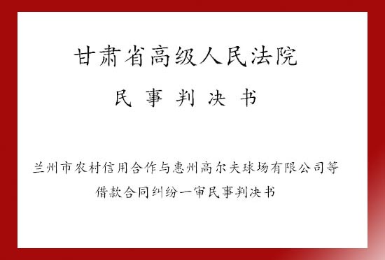 惠州高尔夫球场同兰州市城关区农村信用合作联社等借款合同纠纷一审民事判决书