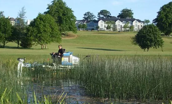 并不是所有的水生植物都是有益的,比如沿岸带中水草的管理就非常困难。球场需要对负责管理水生植物的员工进行培训和教育,让他们认识到水草和有益的植物之间的不同,防止错误修剪的发生。然而,即使是有益的品种也会出现过度生长的情况,球场必须通过物理或者化学方法不定时修剪这些水生植物。