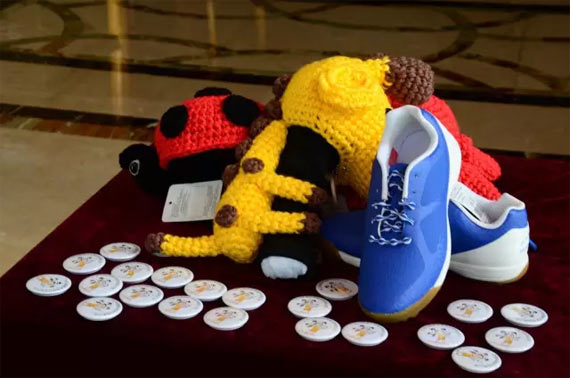 *印有奥运奖牌得主冯珊珊的卡通版小胸章!!!