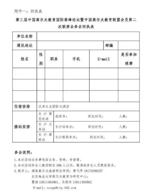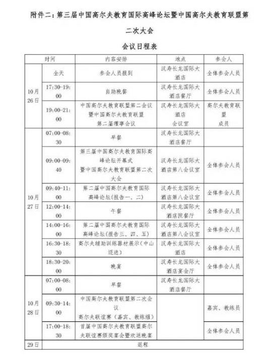 一、会议名称:第三届中国高尔夫教育国际高峰论坛暨中国高尔夫教育联盟第二次成员联席会