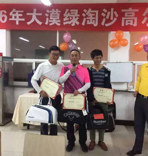 2016年,是榆林大漠绿淘沙高尔夫俱乐部开业的第六年,为了感谢和球会风雨同舟一路走来的辛勤员工,球会组织在10月8日 进行榆林绿淘沙球会球队年终赛暨2016年“员工杯”。本次比赛奖项除了设置了净杆冠军、亚军、季军、最远距离奖、最近旗杆奖、巾帼奖、BB奖外,还奖励净杆第六名、第八名、第十六名、第十八名,另外还有27份精美抽奖奖品。