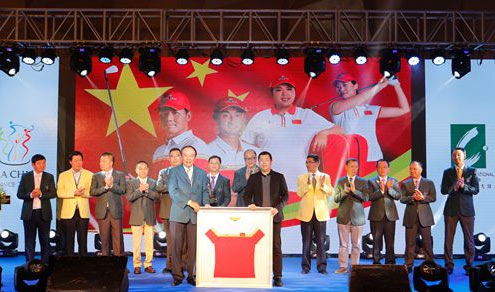 回顾总联会走过的十五年十六届的发展历程,虽然一路充满艰辛,充满挑战,但得益于社会各界友人特别是我们赞助商朋友们的热心支持,年会不断发展壮大。如今,打开中国高尔夫的版图,年会的足迹已遍布祖国的大江南北。总联会作为中国高尔夫球界最具权威性、荣誉性、号召力及品牌影响力的行业交流盛会,经过15年16届艰辛探索,走过了一个传递思想、塑造价值的过程,携手全国高尔夫人,不忘初心,砥砺前行。这一自发形成的行业内组织,已成为全国球会投资人和职业经理人认同认可的平台。年会秘书处为此做出了突出贡献,为表达对秘书处无私付出的深深敬意,比音勒芬品牌特意为年会秘书处准备了中国国家高尔夫球队首征奥运赛场的“五星战袍”,这件战袍以五星红旗为设计灵感,已被中国体育博物馆与中国奥林匹克博物馆永久收藏。比音勒芬服饰股份有限公司董事副总经理陈阳先生在今天的开幕式上向年会秘书处赠送“五星战袍”。