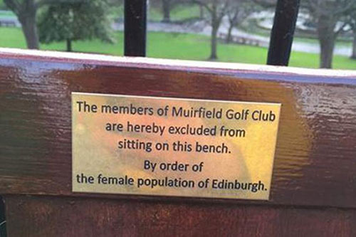 “特此声明,穆菲尔德高尔夫俱乐部的会员们禁止坐这个板凳。奉爱丁堡的女性之命。 ”