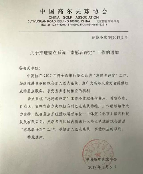 2017年刚到,中国高尔夫球协会和中高协差点系统独家运营机构中体旅(北京)信息科技发展有限公司就给行业发大红包了。