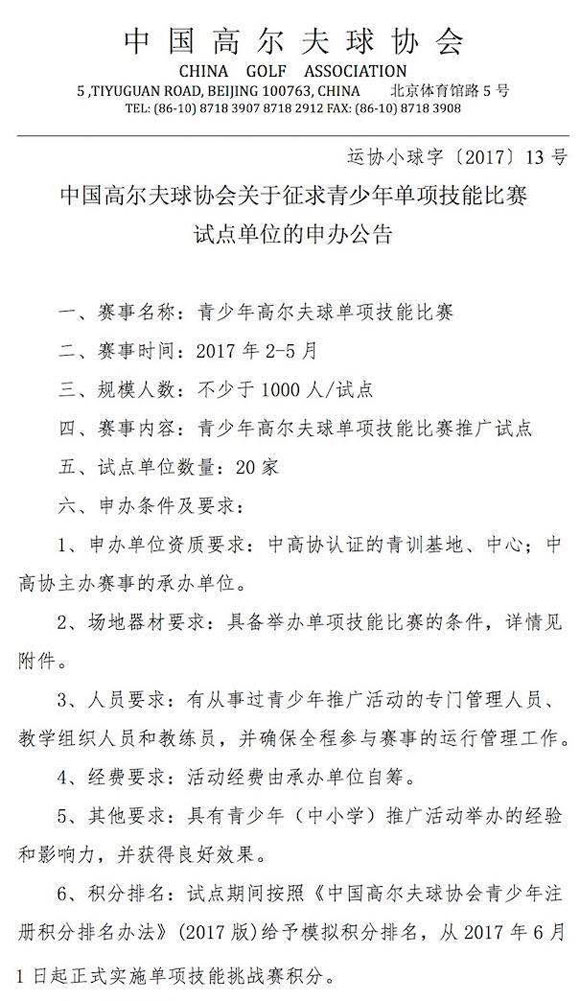 中国高尔夫球协会青少年单项技能比赛考核计分标准(试行) 点击下载: