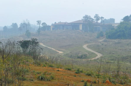 国家多部委22日向社会公布了高尔夫球场清理整治结果,全国共有111个球场被责令取缔。其中,四川共有3个球场被取缔,成都有两个,绵阳有1个。这些被取缔的球场现状如何?有无“死而复生”?近日,记者分别走访了列于取缔名录的四川成都蒲江石象湖高尔夫球场和四川成都青羊绿岭公园高尔夫球场。 记者发现,在一款常用的手机导航上,这两处高尔夫球场的具体位置已无法显示甚至无法搜寻,通过数次问路后,才终于找到其原址。目前,石象湖高尔夫球场早已停工,由于荒废多年,球场内野草丛生。而绿岭公园高尔夫球场虽然有围栏挡住,但长久未启用,也长满杂草,其大门也改名为“青羊绿舟总部经济产业园”。 现场探访 沿着成雅高速一路前行,从石象湖收费站下高速后,进入石象湖景区。由于石象湖高尔夫球场已无法在手机地图上显示,记者遂咨询了景区的一位保安。“高尔夫球场?早就没修了的嘛。”听闻记者打听高球场,保安露出一丝惊讶的表情。 在这位工作人员的指引下,记者来到一片位于半山腰的别墅区。别墅区对面,就是荒废着的石象湖高尔夫球场。远远望去,练习场主楼主体结构已经完工,但由于长久荒废,墙体已经变黑。 练习场主楼前的草坪久未打理,长满了芦苇和蒲公英。一位保洁员告诉记者,项目在两年前就已停工了,“里面都还没装修,就被取缔了,不晓得是啥子原因”。在练习场主楼右侧约800米位置,还有一个欧式建筑,和练习场主楼相同,该建筑也没有进行装修,由于荒废时间较长,现场一片狼藉,还散落着破碎的玻璃窗。 沿着该建筑物往后走,穿过一片半米高的杂草后,能看到多个山坡,山坡下便是石象湖的湖尾。一条宽约1米的疑似通行高球车的水泥路,将各个山坡相连。在个别山坡中,水泥路还被引入人造沟渠,里面摆满了大石头。虽然四处长满荒草,但不难看出这里就是规划中的高尔夫球场。 沿着水泥路往山坡上走,能看到两片规模不大的茶园。有路过的市民表示,自项目停工后,这里就种起了茶叶。 据了解,该球场占地10平方公里,球道按照标准建设,面积超过2000亩,会所配套包括:健身房,球具专卖店,精品服饰店,商务中心,西餐茶餐厅,清吧,儿童娱乐室,儿童高尔夫教室,会议室等,但还未修建完毕就已经被喊停。