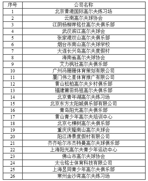 2017年全国高尔夫球青少年夏令营承办单位公示的公告