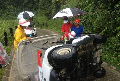 在美国,球车事故有逐年上涨的趋势,当事故发生的时候,小孩特别容易受伤。高尔夫球车的车速上限不高,许多人会认为很容易开。而事实上,起伏不平的地形、潮湿的草地和急转弯在球场中非常常见,稍不注意,轻则乘客从车上被甩出去,重则人仰车翻,撞到头破血流。