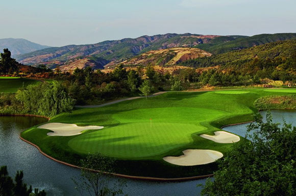 春城本身具有得天独厚的沁人自然风光,阳宗海湖闻名遐迩。山景球场则与湖畔美景浑然一体,徜徉于湖光山色中酣畅挥杆,是内地球友的乐事之一。18洞的锦标球场满足各层次球员的要求,球道宽广,开球相对容易,但果岭被星罗散布的沙坑和草坑包围,进攻果岭需要计算精确。在种植常绿本特草的果岭上推杆更相当具有挑战性。