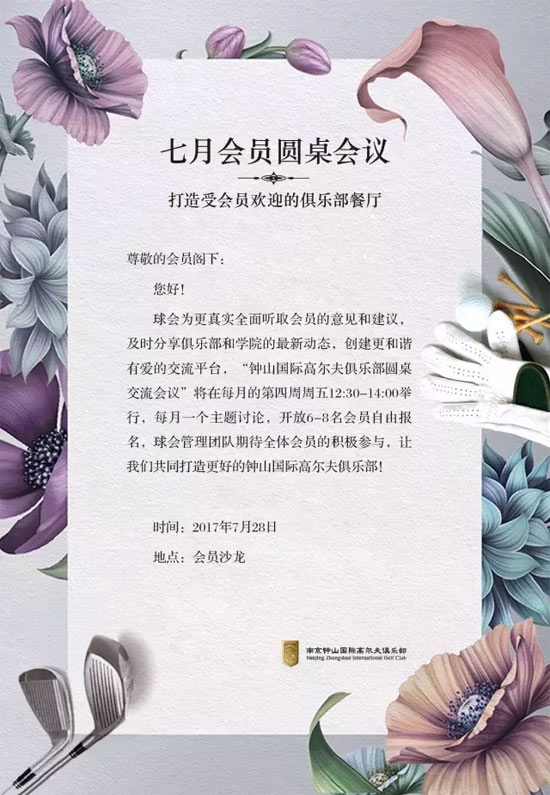 南京钟山国际高尔夫诚邀您参加七月会员圆桌会议