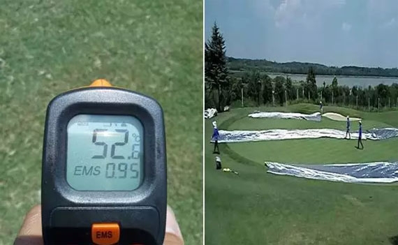 ◆为了更好的客户体验,草坪部员工高温下精心养护果岭。