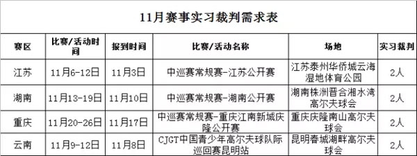 2017年11月由中高协举办的各大赛事中,以下赛事将招募若干名实习裁判员,如广大裁判员有意向参与实习,同时提高自身实践能力,请拨打024-62135569 / 024-62135517(周一至周五8:30-11:00 13:00-16:00)报名。