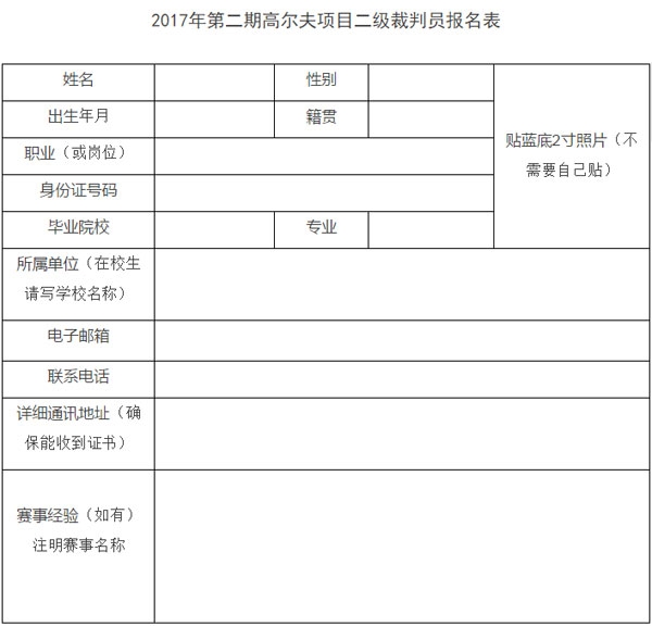 附:2017年第二期高尔夫项目二级裁判员报名表