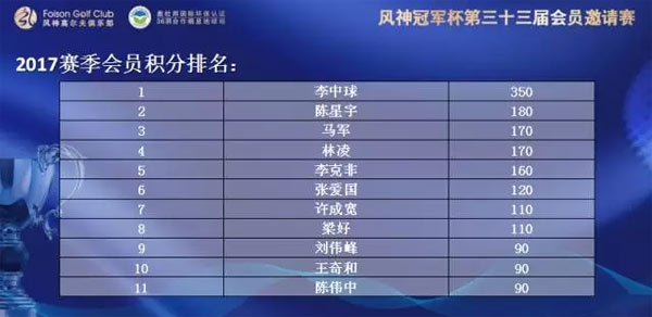 广州风神高尔夫2017年度冠军杯收官,李中球荣膺总冠军