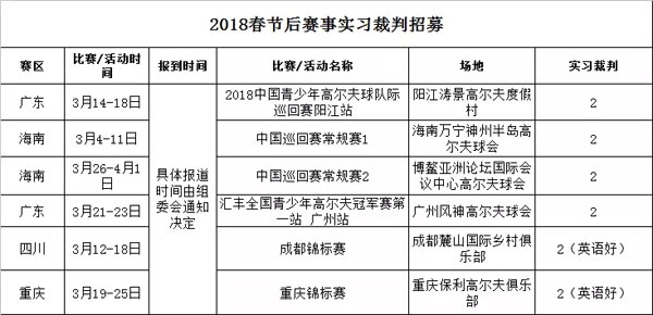 中高协2018年春节后主办赛事实习裁判招募
