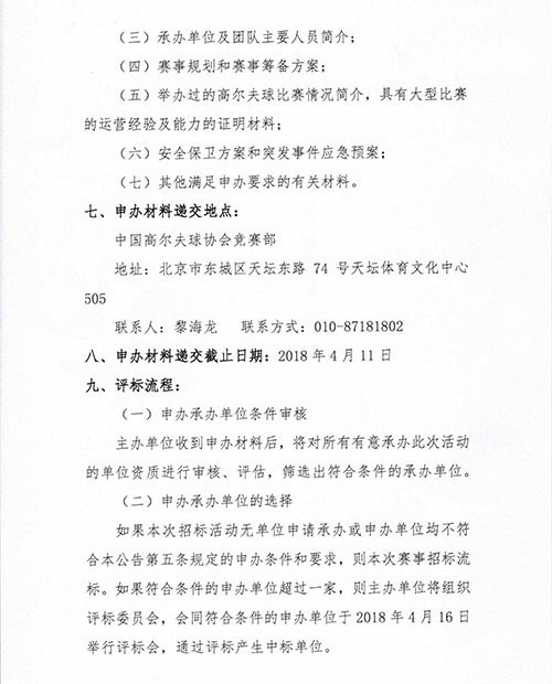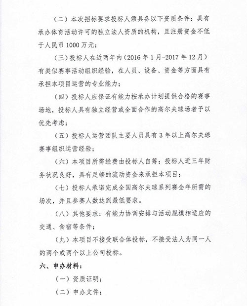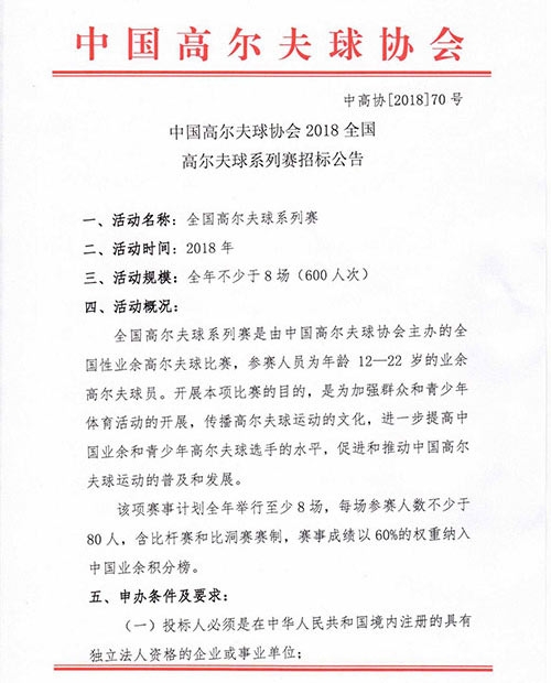 招标:中高协2018全国高尔夫球系列赛招标公告