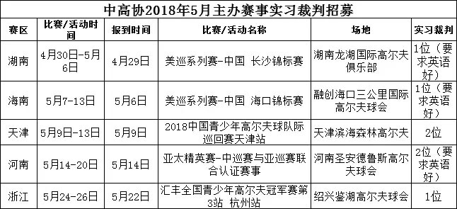 2018年5月由中高协举办的各大赛事中,由奥丰体育负责组织招募若干名实习裁判员,具体条件如下: