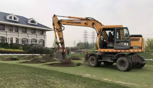 4月13日早上9点左右,大批不明身份的人员和施工车辆强行闯入位于朝阳区常营乡东苇路128号的叠泉高尔夫球会。在驱散了球会员工后,将推土机直接开上球道和果岭,铲除草坪并在果岭上种上了树木,施工车辆还将球会会所的部分墙角撞坏。