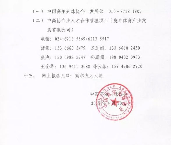 二、 承办单位:中国高尔夫球协会专业人才合作管理项目