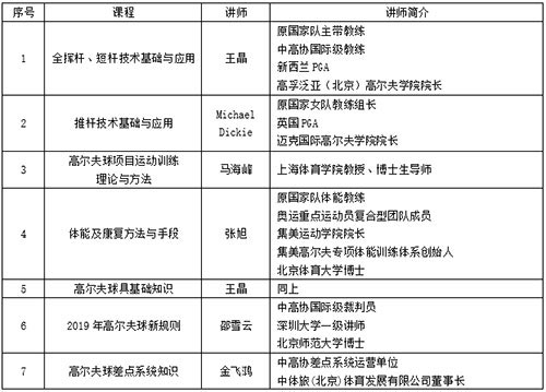 培训内容参照中级教练员培训开展,针对院校教师适度增加内容。讲师从中国高尔夫球协会教练员讲师团、裁判员讲师团中择优选派组成本次培训班讲师团队。详情如下: