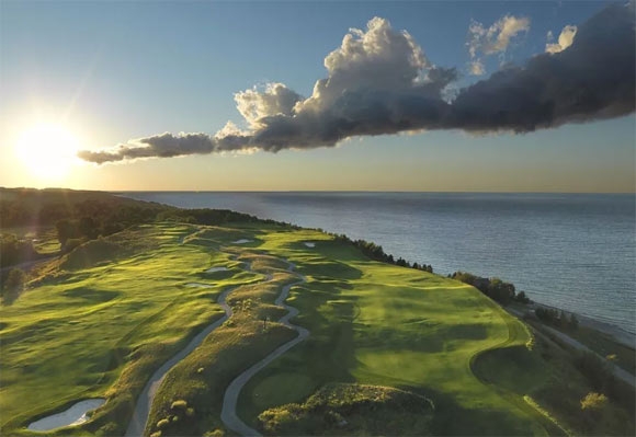 世界上没有两个一样的高尔夫球场,高尔夫球场是依自然地势和景观设计而成,通常一个国际标准高尔夫球场为十八洞,标准杆为72杆,占地面积为1000亩到2000亩不等,球道总长度约5000码到7000码不等。