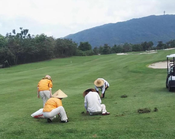 随着第一次筹备会议的开始,球场草坪及会所等保养护理工作也如火如荼进行中。全体员工加入拔杂草、补草工作。