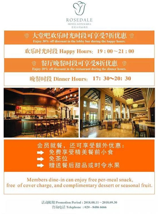 2018年9月7日起,会所餐厅将推出五款时令菜式,酱汁浓郁的将军鹅,鲜活香口的煎焗魽鱼,清爽养身的支竹捞水冬芥菜......美味可口的菜品将满足阁下的味蕾,大快朵颐的同时,大堂吧欢乐时光7折及餐厅晚餐8折活动还在持续中。