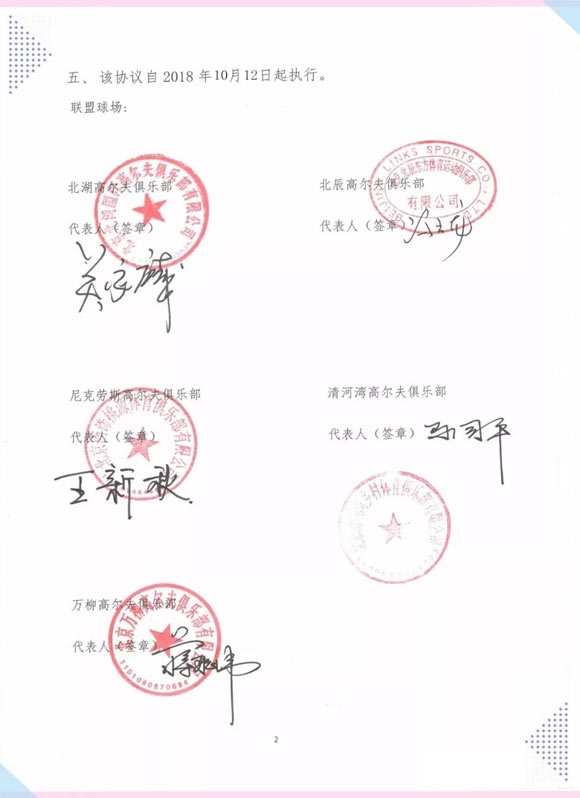 球场联盟发起球会一致承诺遵守以下协议并倡议广大高尔夫运营单位,秉承高尔夫运动的贵族理念,遵守高尔夫运动规则,遵守球会的规章制度,尊重球场的从业人员。共同推动高尔夫行业向着健康、和谐、自律的方向发展,营造良好的高尔夫生态环境,为高尔夫这项古老的体育运动能够长足发展贡献自己的一份力量!