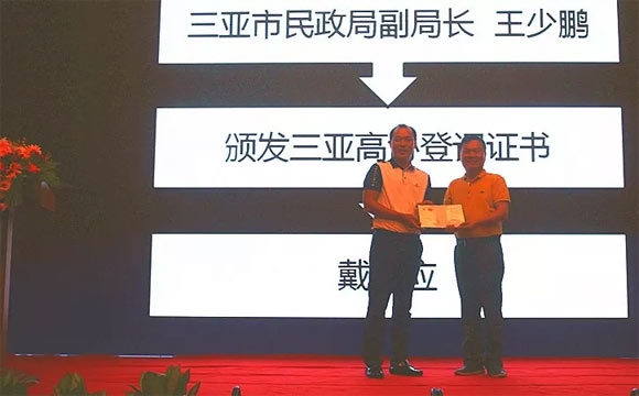 在成立大会上,三亚市民政局副局长王少鹏向三亚市鹿城高尔夫球运动协会秘书处负责人戴玉应颁发了三亚市鹿城高尔夫球运动协会登记证书。