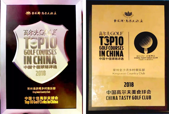 常州金沙湾获2017-2018中国十佳球会、中国高尔夫美食球会