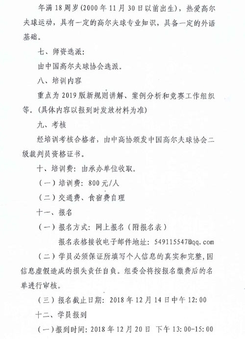 中高协关于认证2018年第四期二级裁判员培训通知